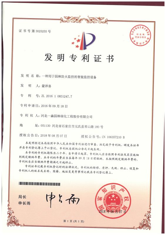 【一森頭條】祝賀一森園林再獲發(fā)明專利