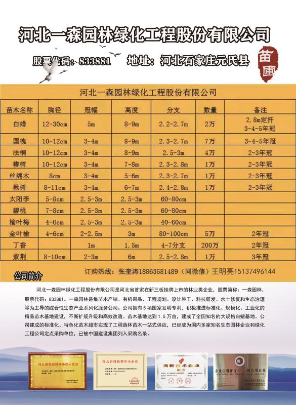 此次會(huì)議由河北省林木種苗協(xié)會(huì)主辦,一森園林公司承辦,支持媒體有《中國花卉報(bào)》、《中國綠色時(shí)報(bào)》和元氏電視臺(tái),參加會(huì)議的技術(shù)專家有河北省科技廳農(nóng)村處處長徐成、河北省林業(yè)和草原局國有林場和林木種苗管理處處長張錦成、河北省林業(yè)和草原局科技處副處長劉新、石家莊市科技局農(nóng)村處處長高少軒、石家莊市科技局市科技局法規(guī)處副處長趙春杰、元氏縣科技局局長李旭樓、河北省林木種苗協(xié)會(huì)會(huì)長汪民、協(xié)會(huì)副會(huì)長、河北一森園林綠化工程股份有限公司董事長耿軍林、專委會(huì)主任河北農(nóng)業(yè)大學(xué)園林旅游學(xué)院院長黃大莊、副主任委員河北農(nóng)業(yè)大學(xué)林學(xué)院教授、博士生導(dǎo)師楊敏生、河北省林業(yè)和草原科學(xué)研究院黨委書記、教授級(jí)高工王玉忠等人。